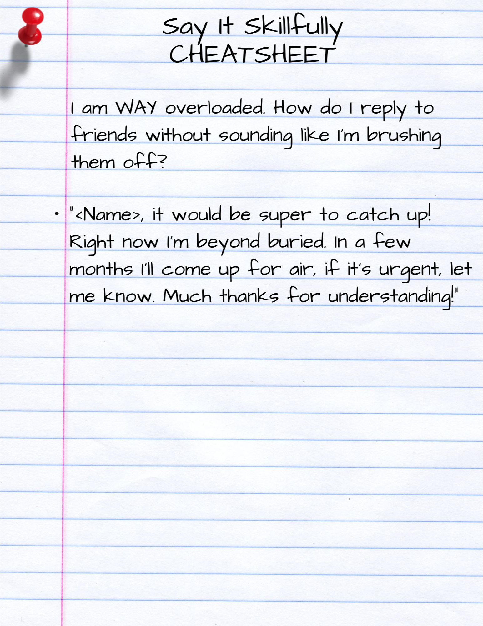 This week helps you with politely letting a friend know you're overloaded and have no time at the moment. |