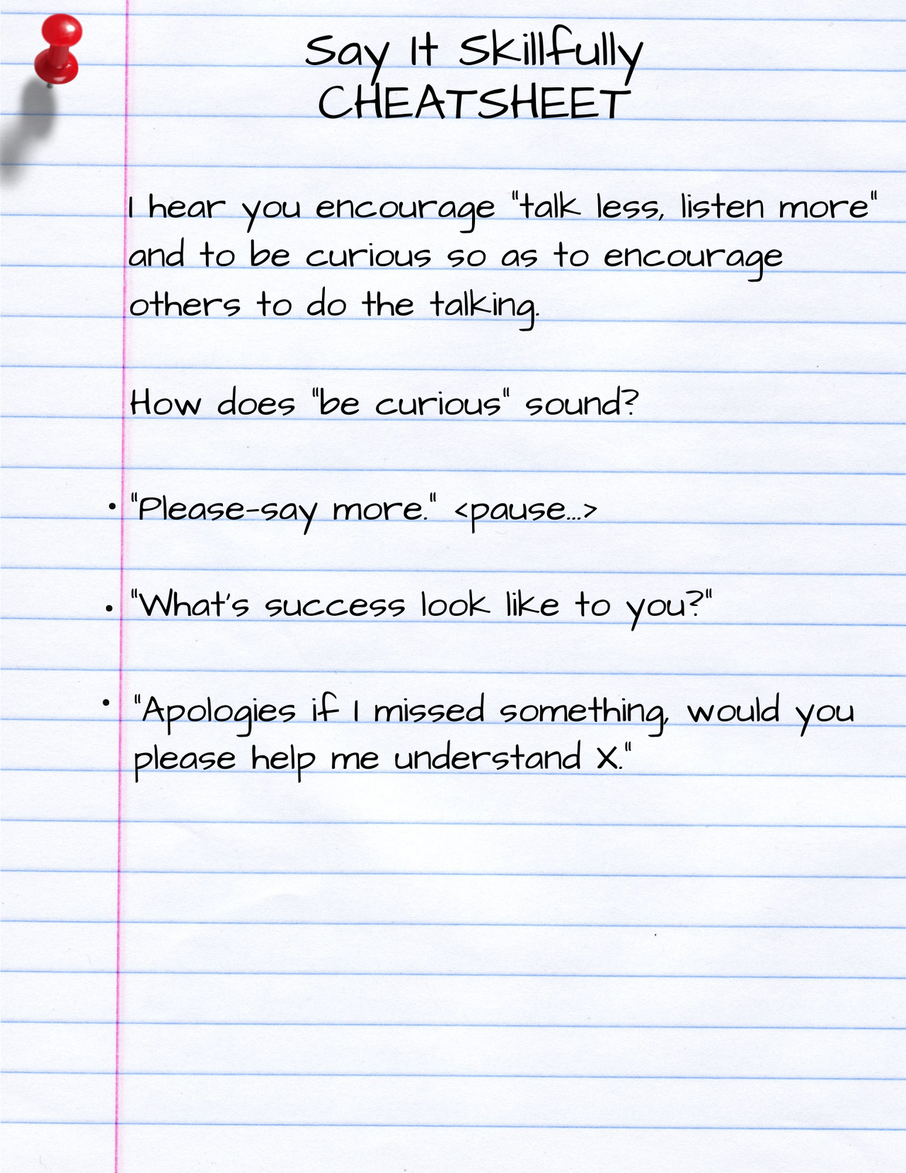 Often I'm told, "Hang on, I'm writing down what you said." My cheatsheet saves you that effort!